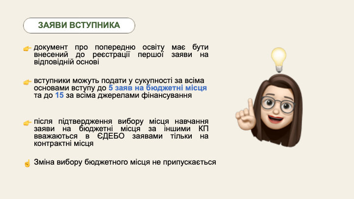 Для вступу на будь-яку спеціальність (незалежно від форми навчання ー очна чи заочна, бюджетна чи контрактна тощо) потрібно буде складати ЄВІ.  Тож у заяві-анкеті потенційного магістра обов’язково має бути зазначено назву цього іспиту.